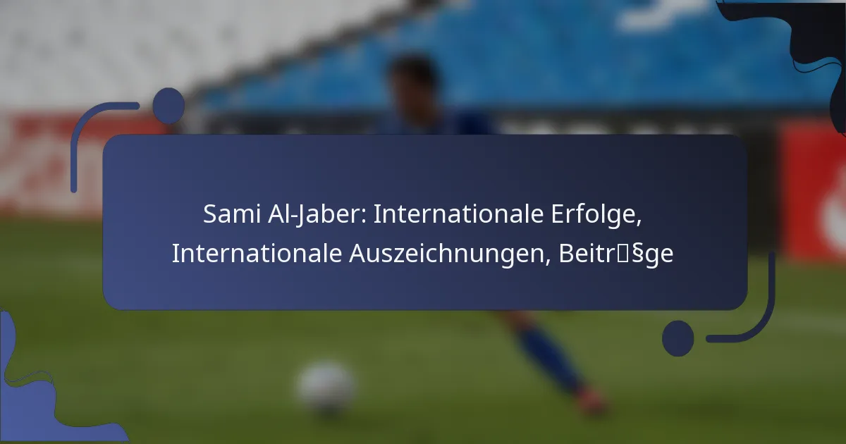 Sami Al-Jaber hat im Laufe seiner Fußballkarriere zahlreiche internationale Auszeichnungen erhalten, die seine außergewöhnlichen Beiträge zum Sport hervorheben. Zu seinen Erfolgen gehören die Teilnahme an prestigeträchtigen Turnieren, individuelle Auszeichnungen und Anerkennung von verschiedenen Fußballverbänden.